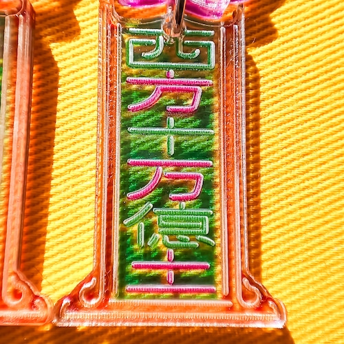 アジア圏(特に香港)のネオンサインらしく作るためには、「色板から距離があり、宙に浮いているようなネオンサイン管の再現」が必須となりますが、こちらのアクセサリーはアクリルの中に浮かぶよう作られており「色板から距離のある発光(可能)箇所」を再現するようにしています。アクリルにより制作されているため、側面から光が入ると反射して文字部分が光ります。