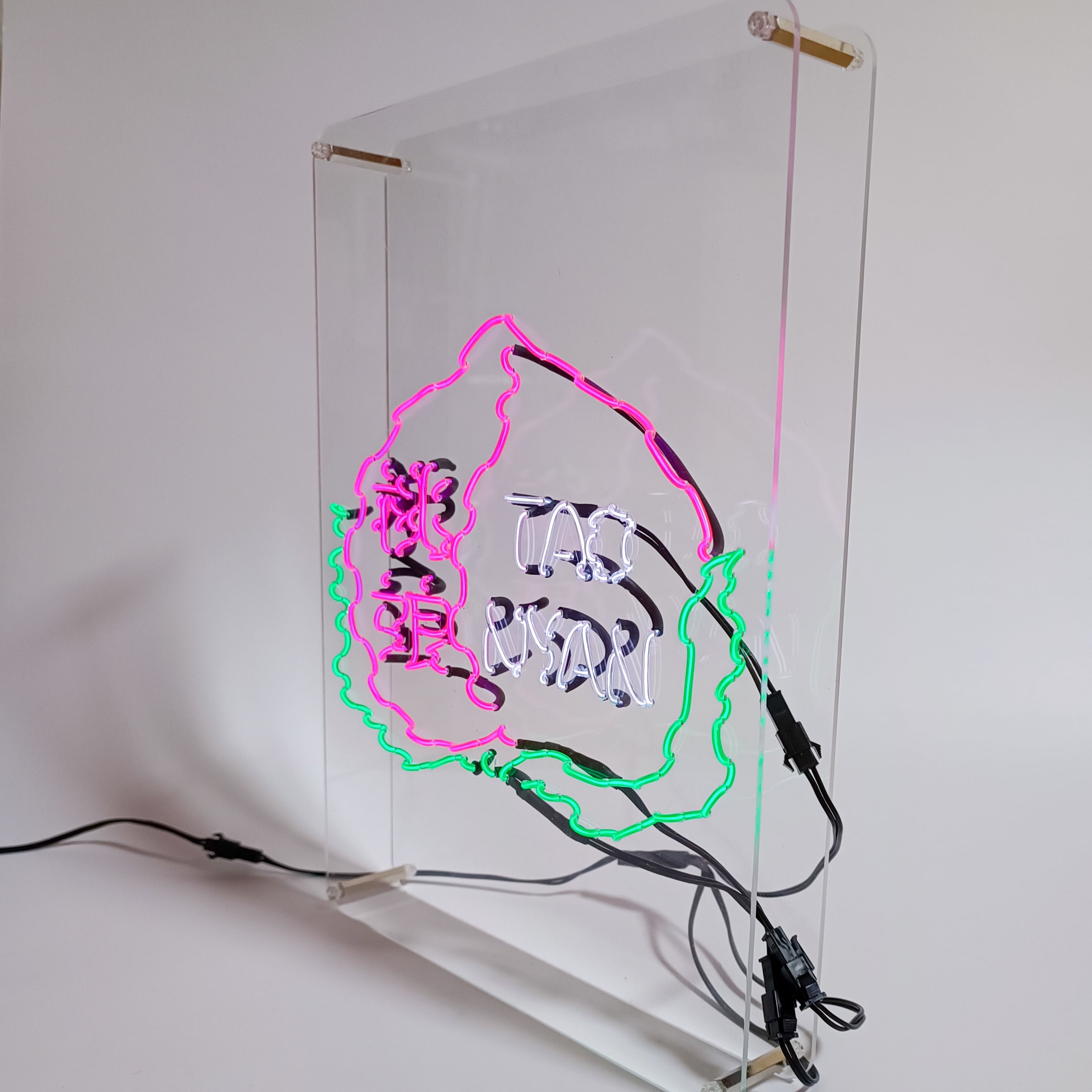 ミニネオンは厳密にはネオンサインではありません。使用されている素材はEL(エレクトロルミネッセンス)、アクリルを用いられており、LEDではありませんが似た素材です。ネオンサインに比べて光量は弱いですが、安全で扱いやすい素材です。この製法はネオンサインで表現できないより小さいサイズのネオンサイン風作品をより安価に、より簡単に製作するために開発されました。この製法は、ネオンサインでは難しい表現を実現することや、担い手や天然資源などの面でのサステナビリティをもたらすことを狙っています。ただし、製法や素材における優劣を意味したいではなく、あくまで用途ごとに最適な選択肢が異なることを意味するのみである点は強調させてください。